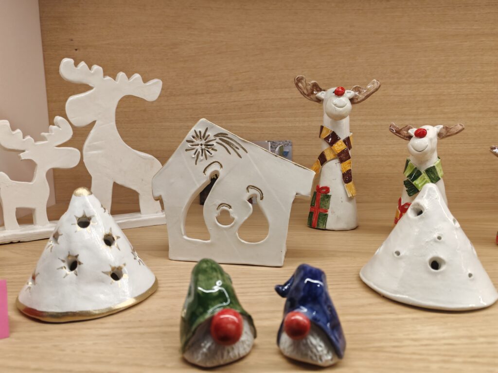 I prodotti della cooperativa sono il frutto del laboratorio di ceramica, in cui i nostri ospiti modellano e decorano la creta per farla diventare delle opere artigianali uniche e originali. Durante il periodo natalizio si possono trovare addobbi, oggetti a tema natalizio ma soprattutto delle splendide e solidali idee per i vostri regali!